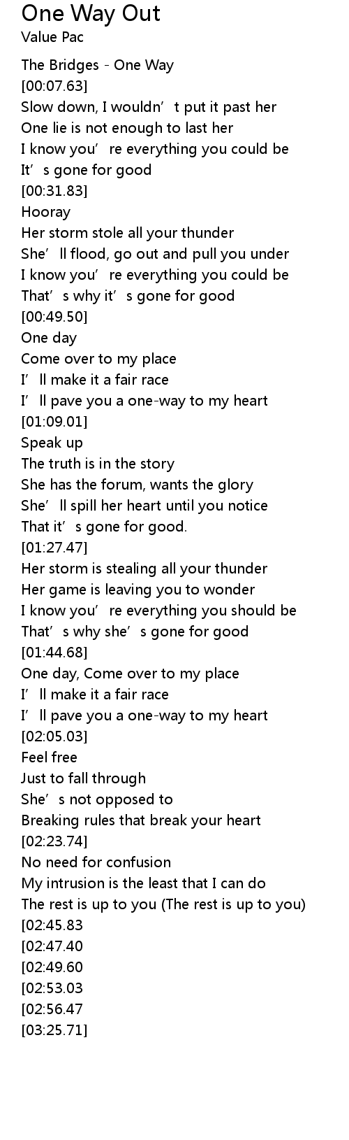 | [00:01.34] | The Bridges - One Way |