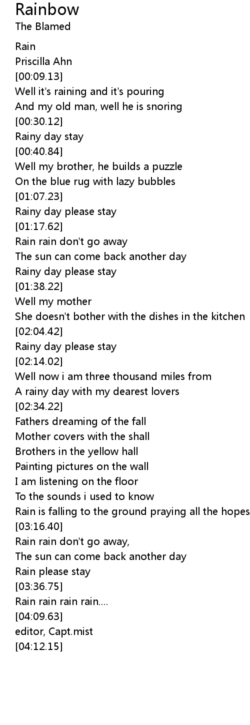 [03:11.31] Rain is falling to the ground praying all the hopes are found