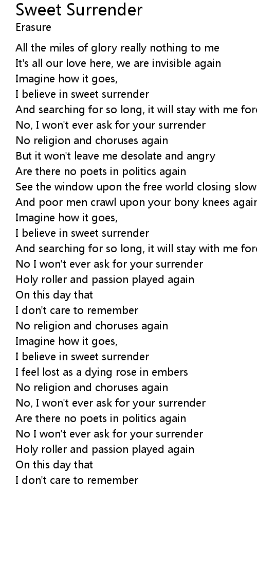 | I believe in sweet surrender | |