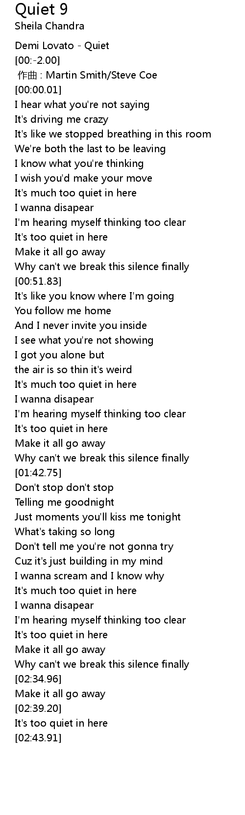 | [02:12.88] | I'm hearing myself thinking too clear |