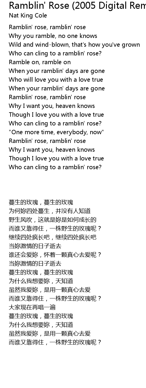 Ramblin' Rose (2005 Digital Remaster) Lyrics