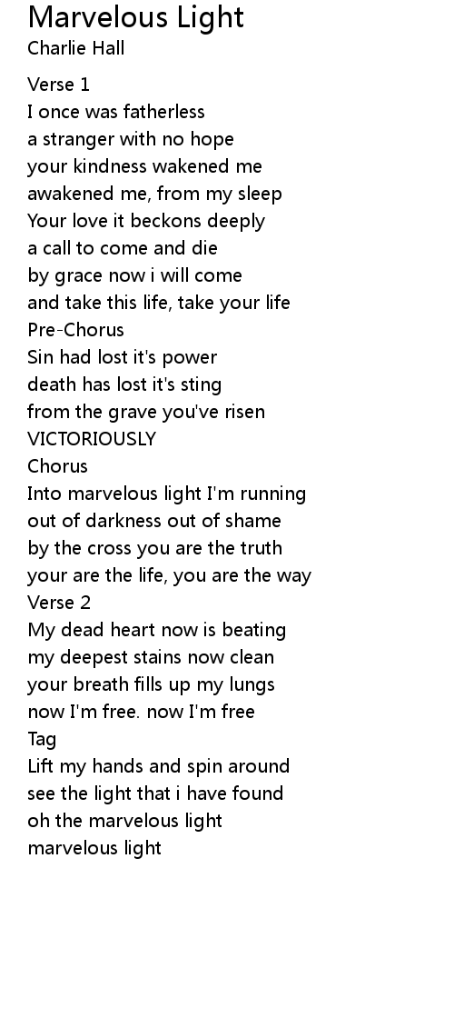 Into marvelous light I'm running |