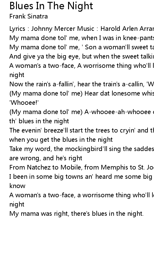 | My mama was right, there' s blues in the night. |