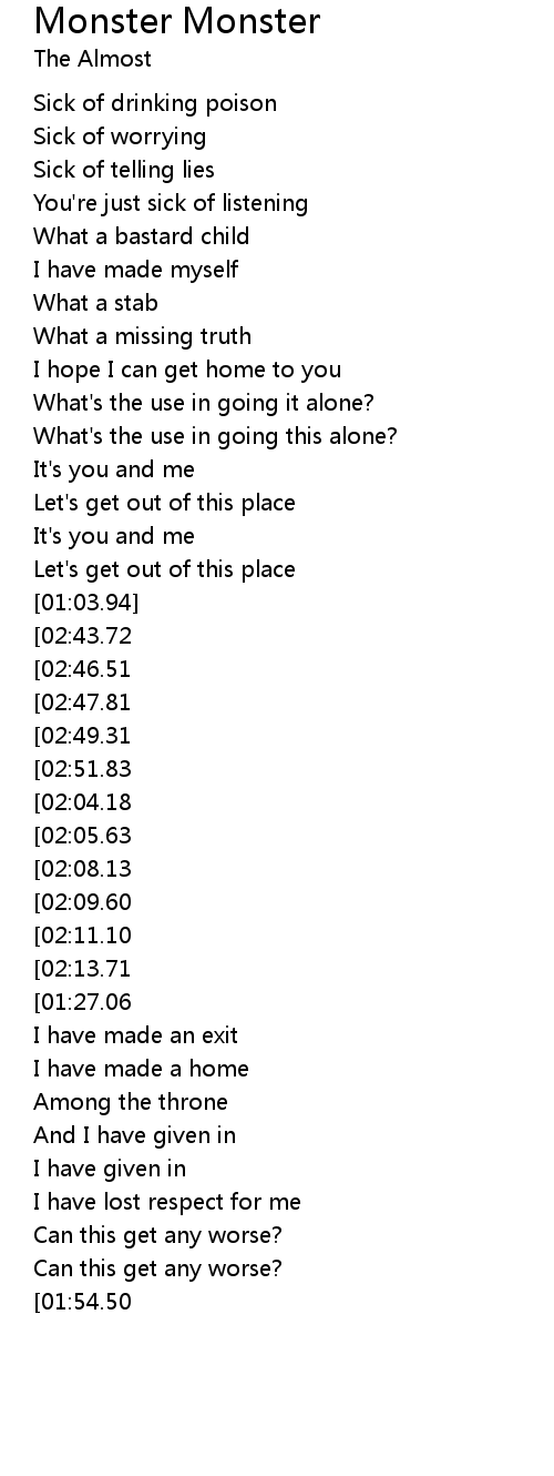 I'm sick of this monster monster |