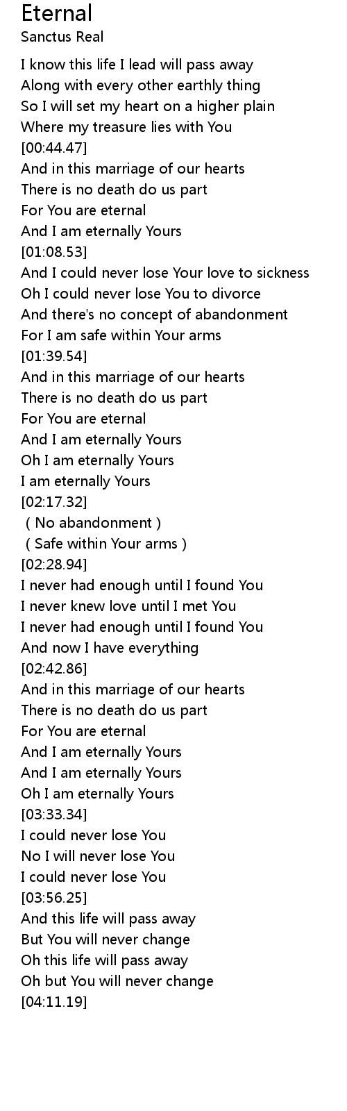 | [03:27.47] | Oh I am eternally Yours |