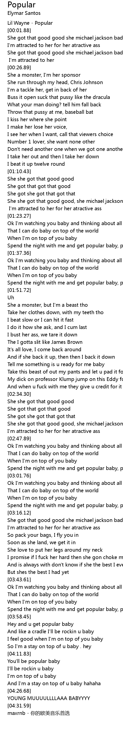 | [02:57.04] | Spend the night with me and get popular baby, po-popular baby |