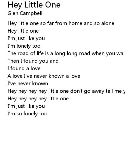 | Hey little one so far from home and so alone | |