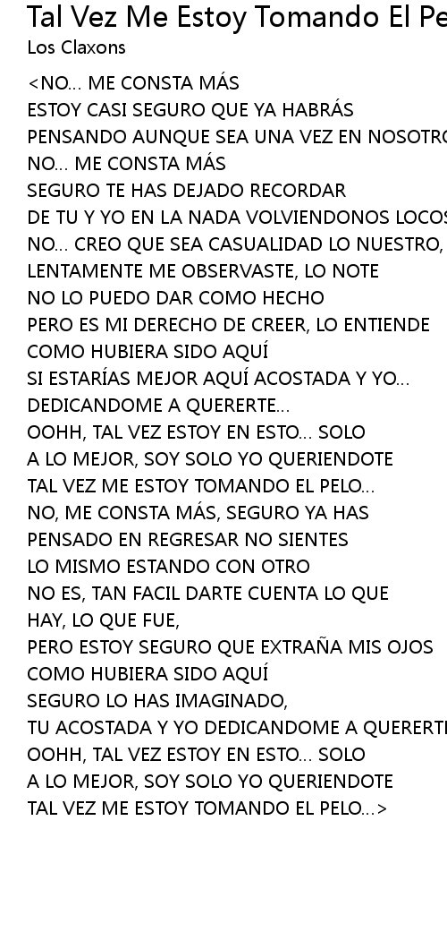 | Song | Tal Vez Me Estoy Tomando El Pelo |