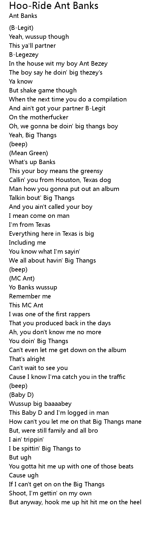 How can't you let me on that Big Thangs mane |