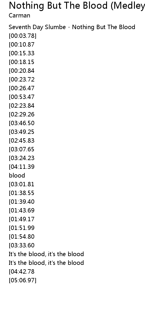 [04:55.49][03:49.25][02:37.53][01:09.49] nothing but the blood of Jesus
