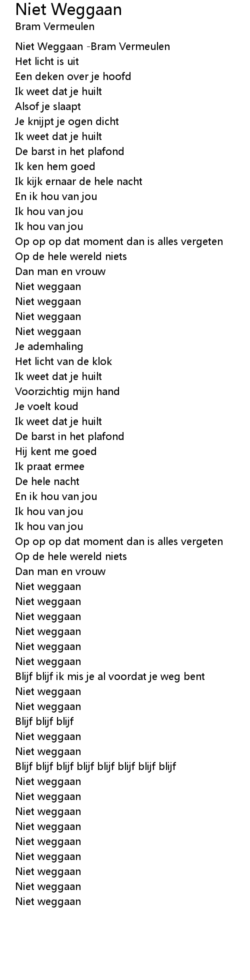 Niet Weggaan Lyrics