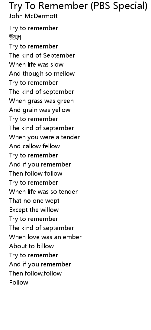 | [00:14.00] | Try to remember |