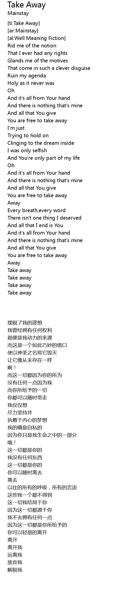Take Away Lyrics