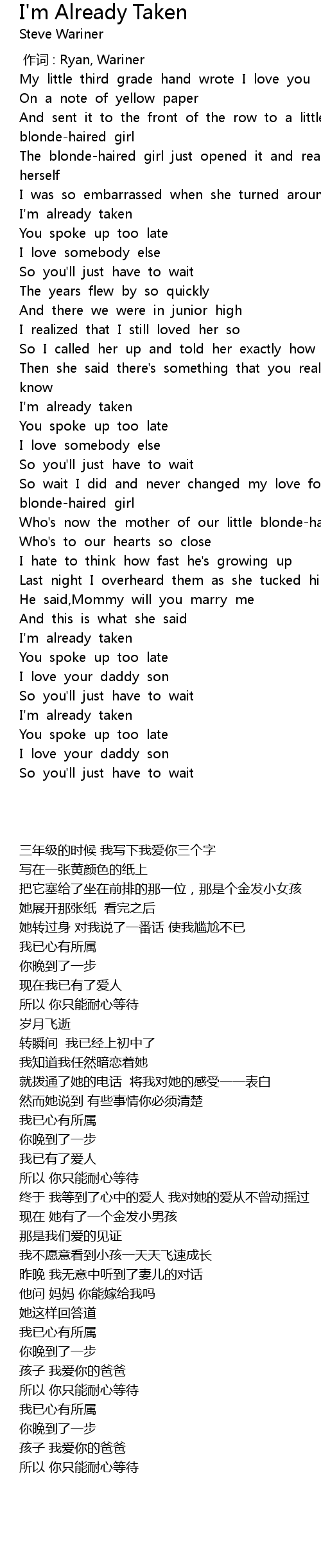 | [01:45.782] | So wait I did and never changed my love for that little blonde-haired girl |