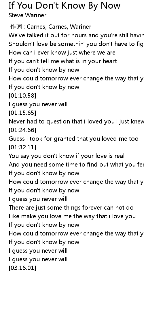 | [01:18.38] | Never had to question that i loved you i just knew |