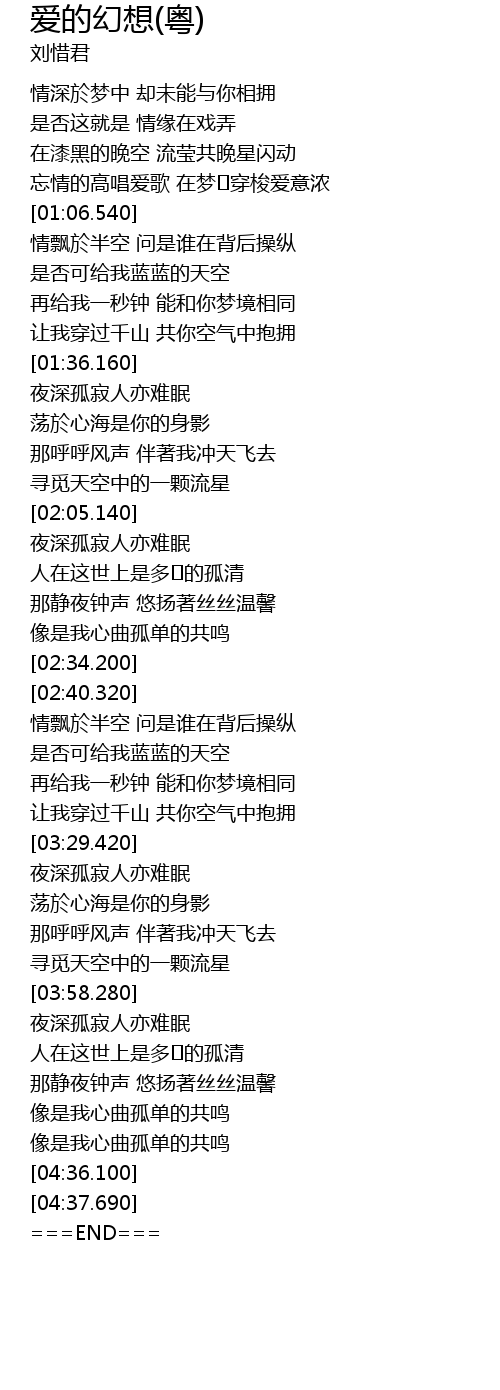 | [00:59.790] | 忘情的高唱爱歌 在梦�穿梭爱意浓 |