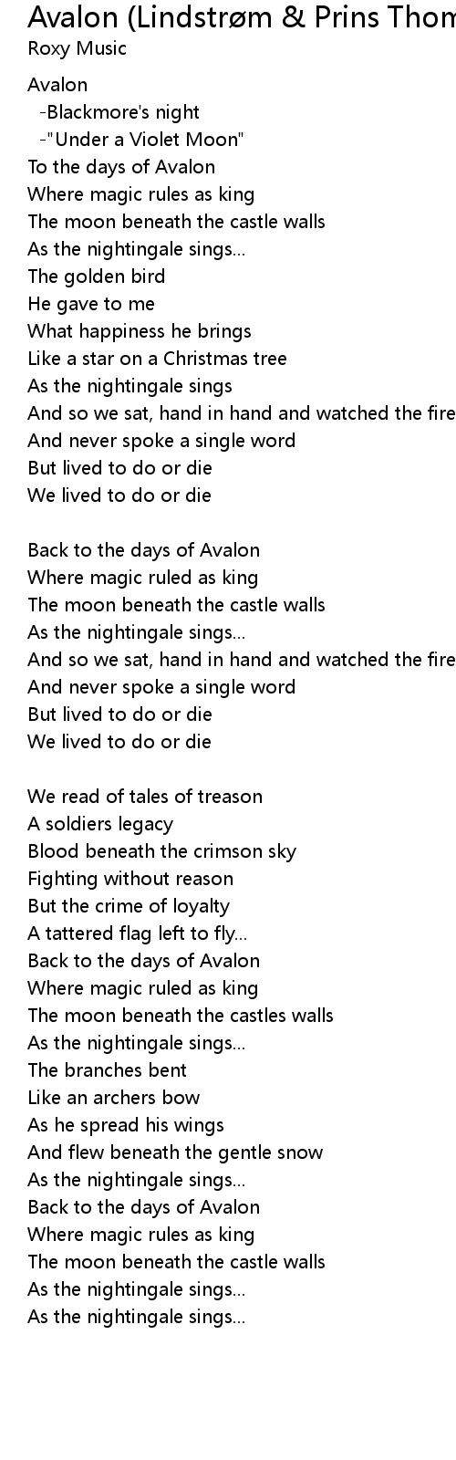 To the days of Avalon |