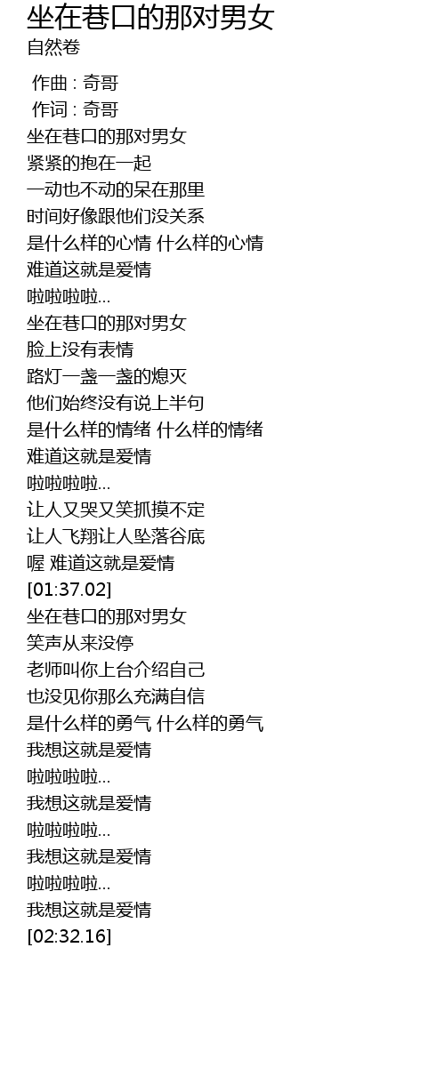 | [01:38.50] | zuò zài xiàng kǒu de nà duì nán nǚ |