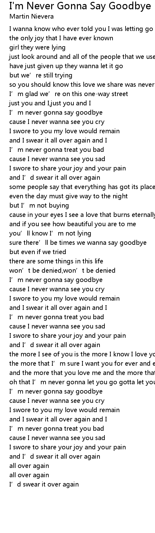 | oh that I’m never gonna let you go gotta let you know that I | |
