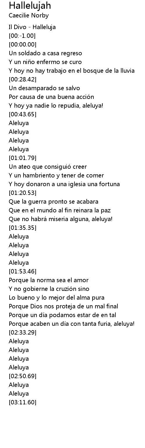 | [02:26.71] | Porque acaben un di a con tanta furia, aleluya! |