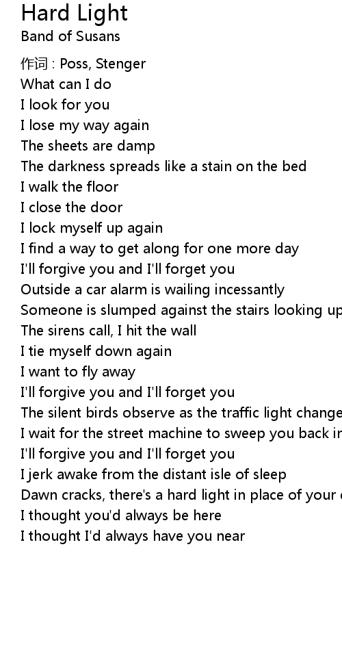 | Dawn cracks, there' s a hard light in place of your dreaming face | |