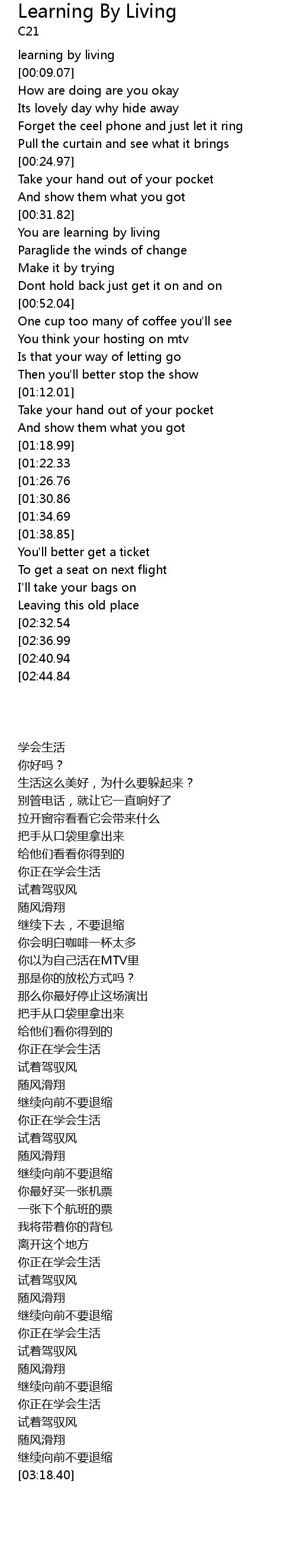 | [02:50.22][02:32.54][02:16.09] | You are learning by living |
