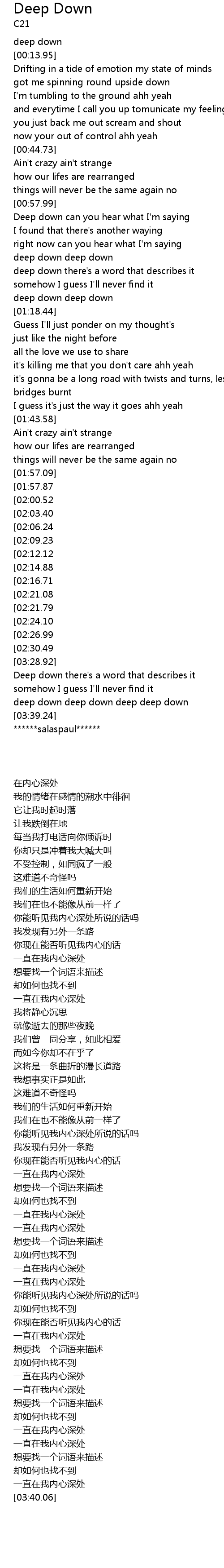 | [03:14.01][02:21.08] | Deep down deep deep down |