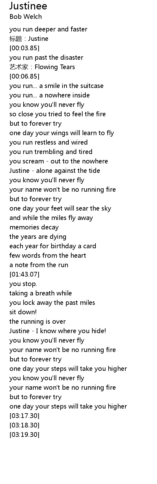 | [00:54.67] | Justine alone against the tide |
