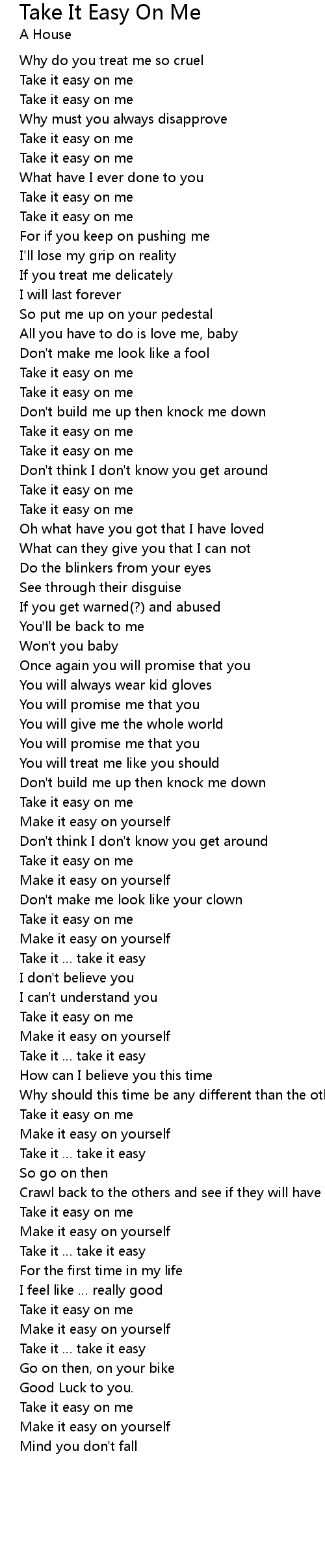 | Take it easy on me | |