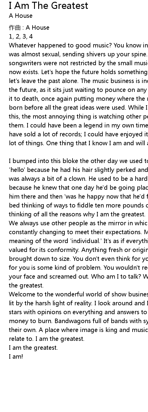 | have sold a lot of records I could have enjoyed it as well. I could have been a lot of things. One thing that I know I am and will always be: I am the greatest. | |
