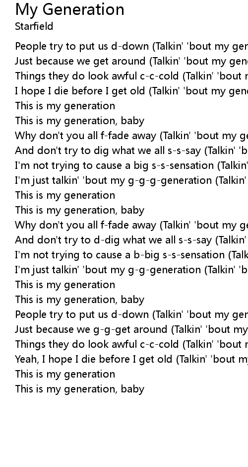 And don't try to d-dig what we all s-s-say (Talkin' 'bout my generation) |