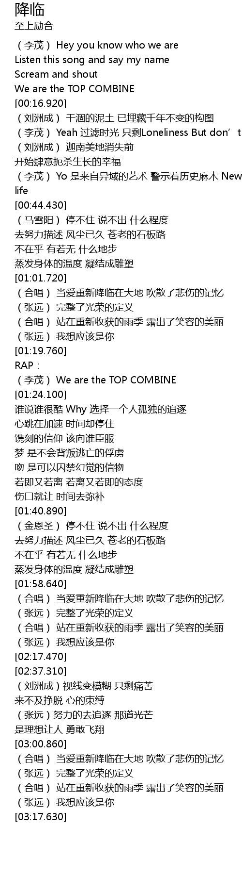 | [01:21.640] | lǐ mào We are the TOP COMBINE |