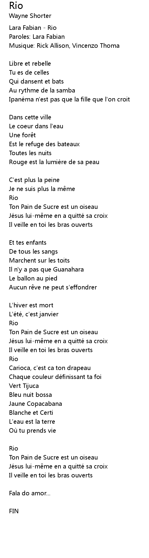 | Lara Fabian Rio | |