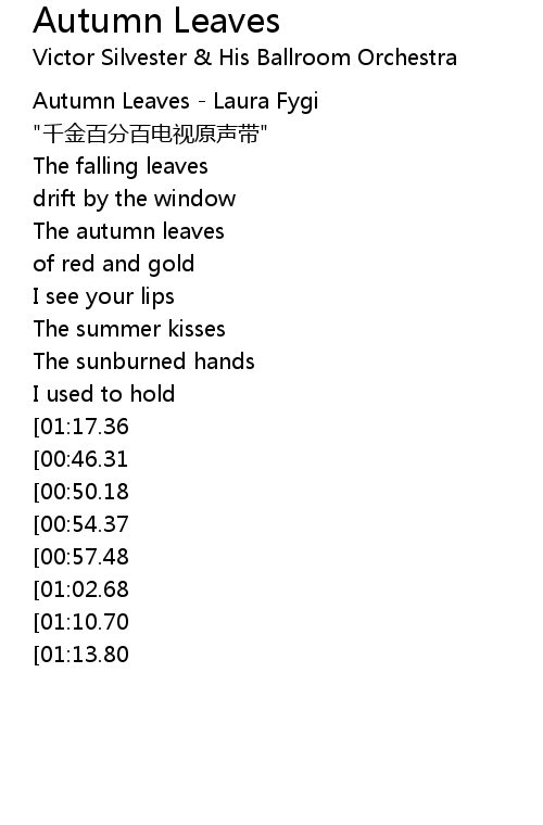 | [00:00.00] | Autumn Leaves Laura Fygi |