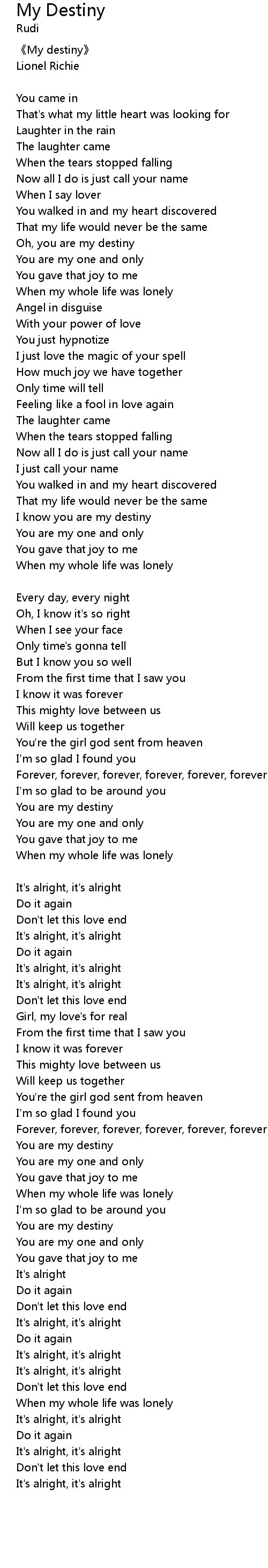| I know you are my destiny | |