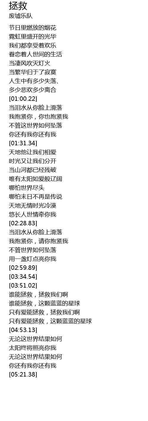 | [04:01.29] | 谁能拯救,拯救我们啊 |