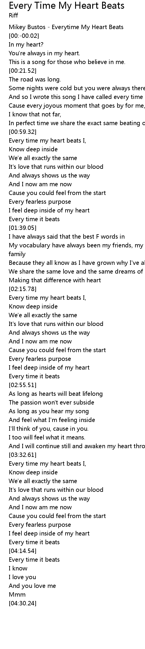 | [00:31.37] | And so I wrote this song I have called every time my heart beats |