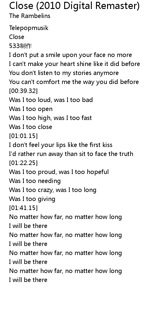 | [01:02.48] | I don't feel your lips like the first kiss |