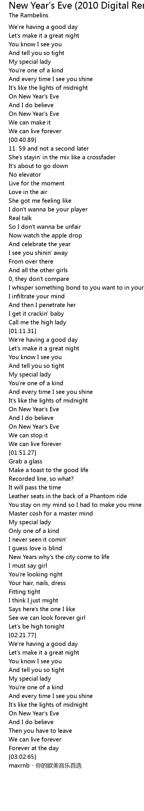 | Song | New Year's Eve (2010 Digital Remaster) |