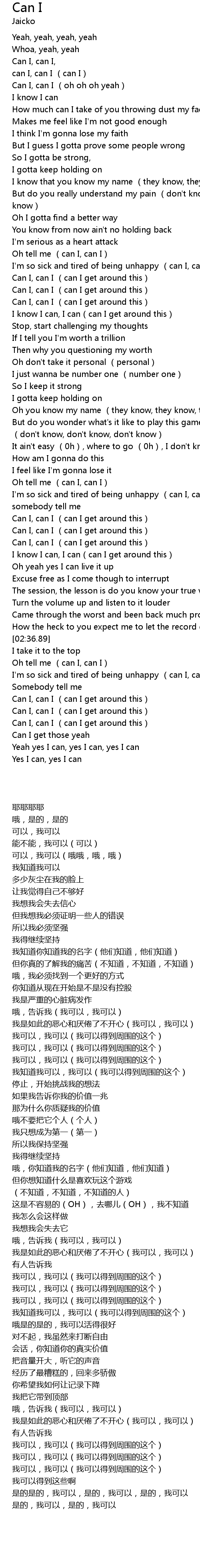 | [03:00.54] | Yeah yes I can, yes I can, yes I can |
