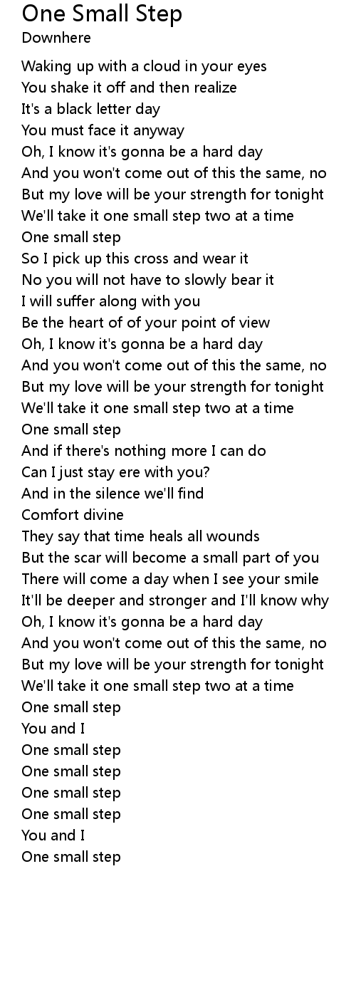We'll take it one small step two at a time |