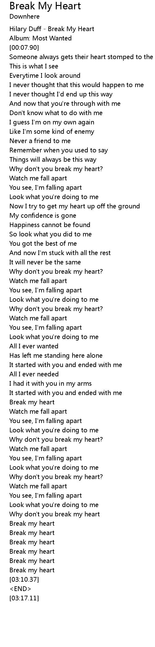 [00:-0.50] Hilary Duff - Break My Heart