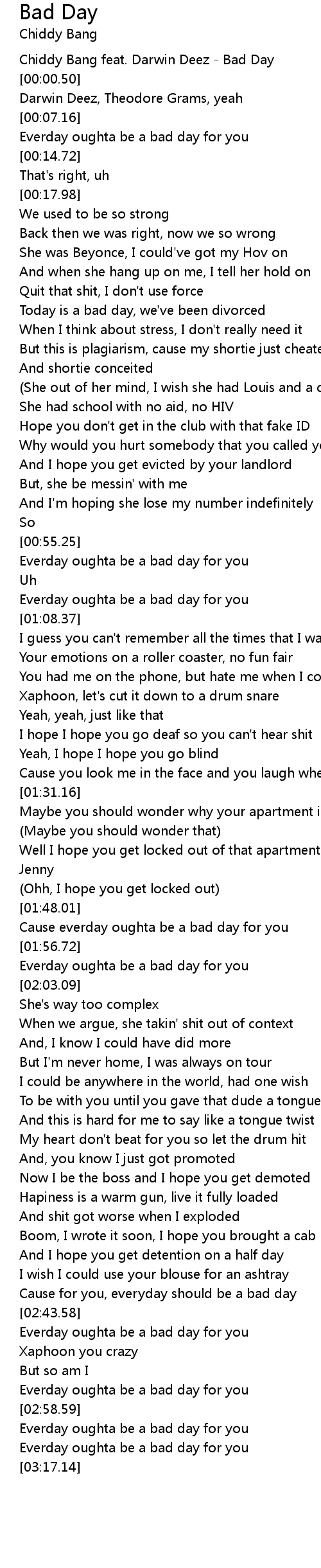 Everday oughta be a bad day for you |