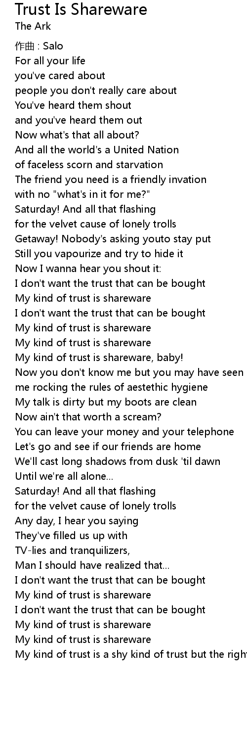 | My kind of trust is a shy kind of trust but the right kind of trust is shareware |