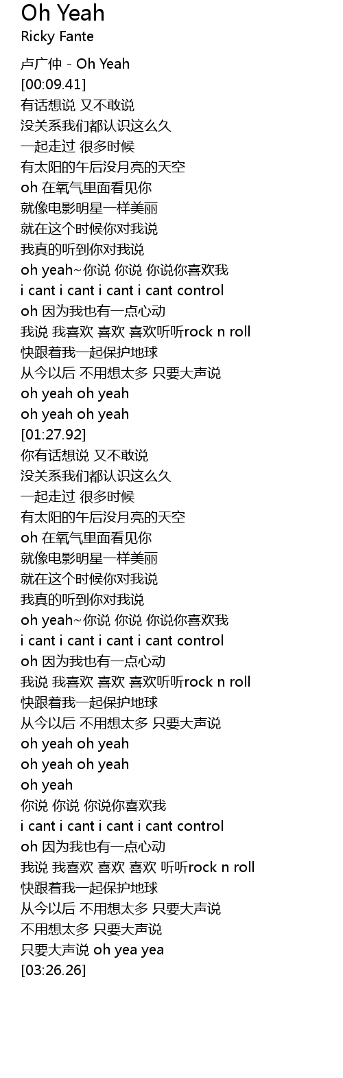 | [00:00.20] | 卢广仲 - Oh Yeah |