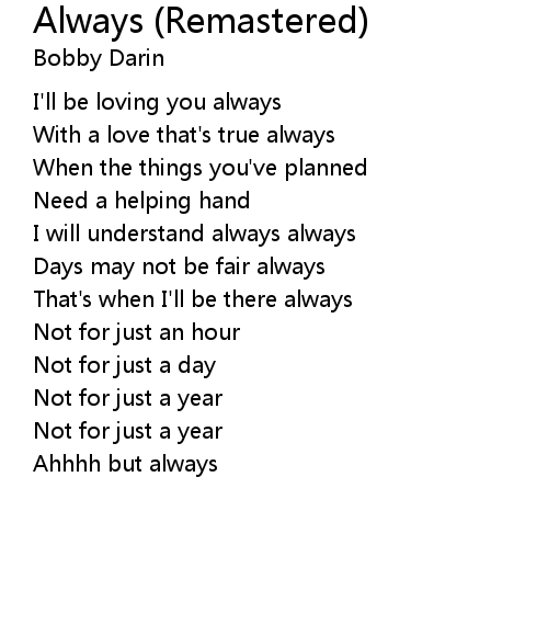 | I'll be loving you always | |