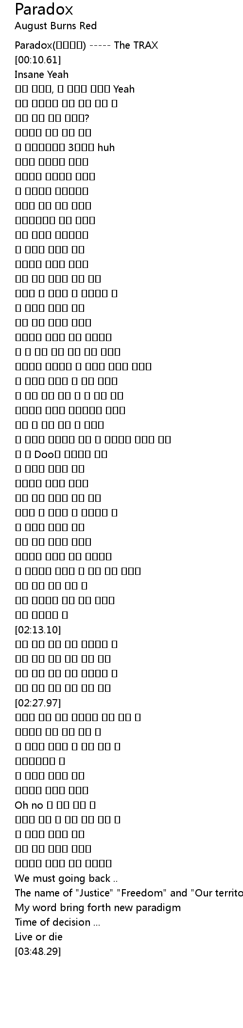 | [00:00.00] | Paradox(파라독스) ----- The TRAX |