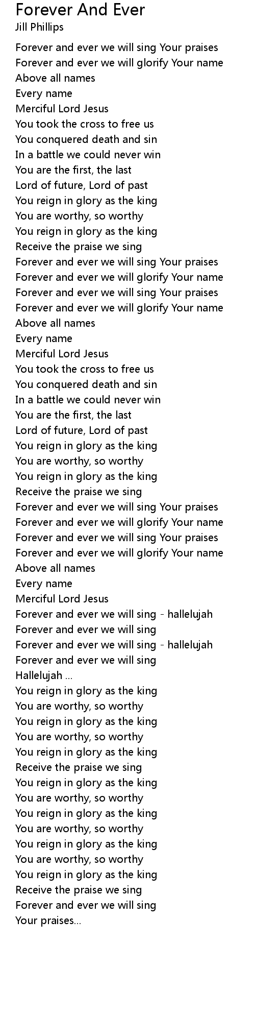 Forever and ever we will glorify Your name |