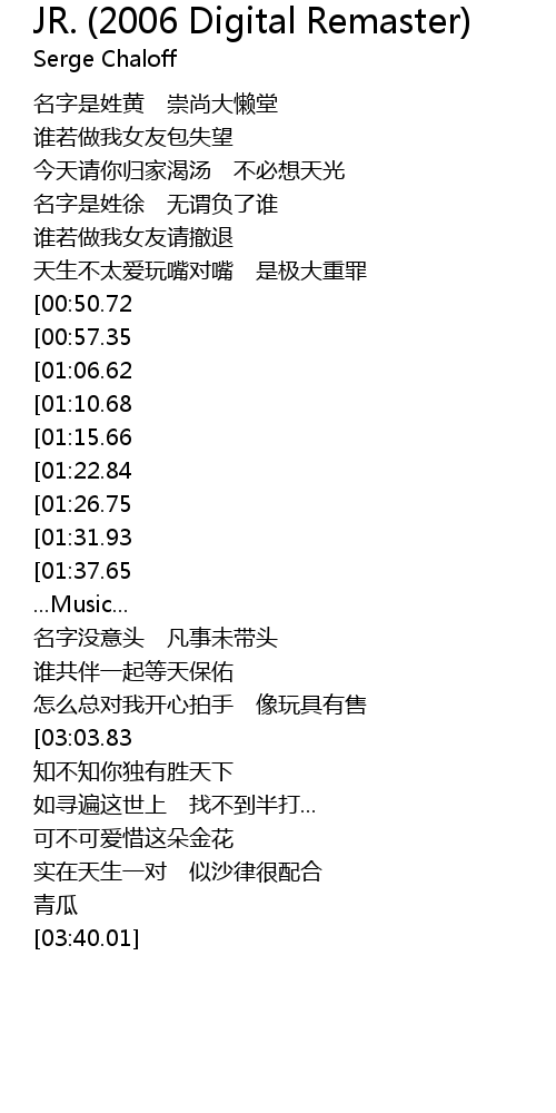 | [03:35.05] | 青瓜 |