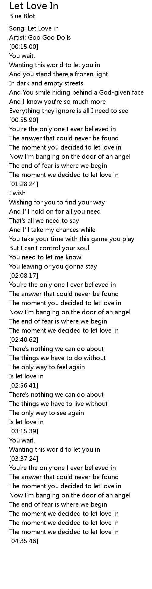 | [02:53.17] | Is let love in |